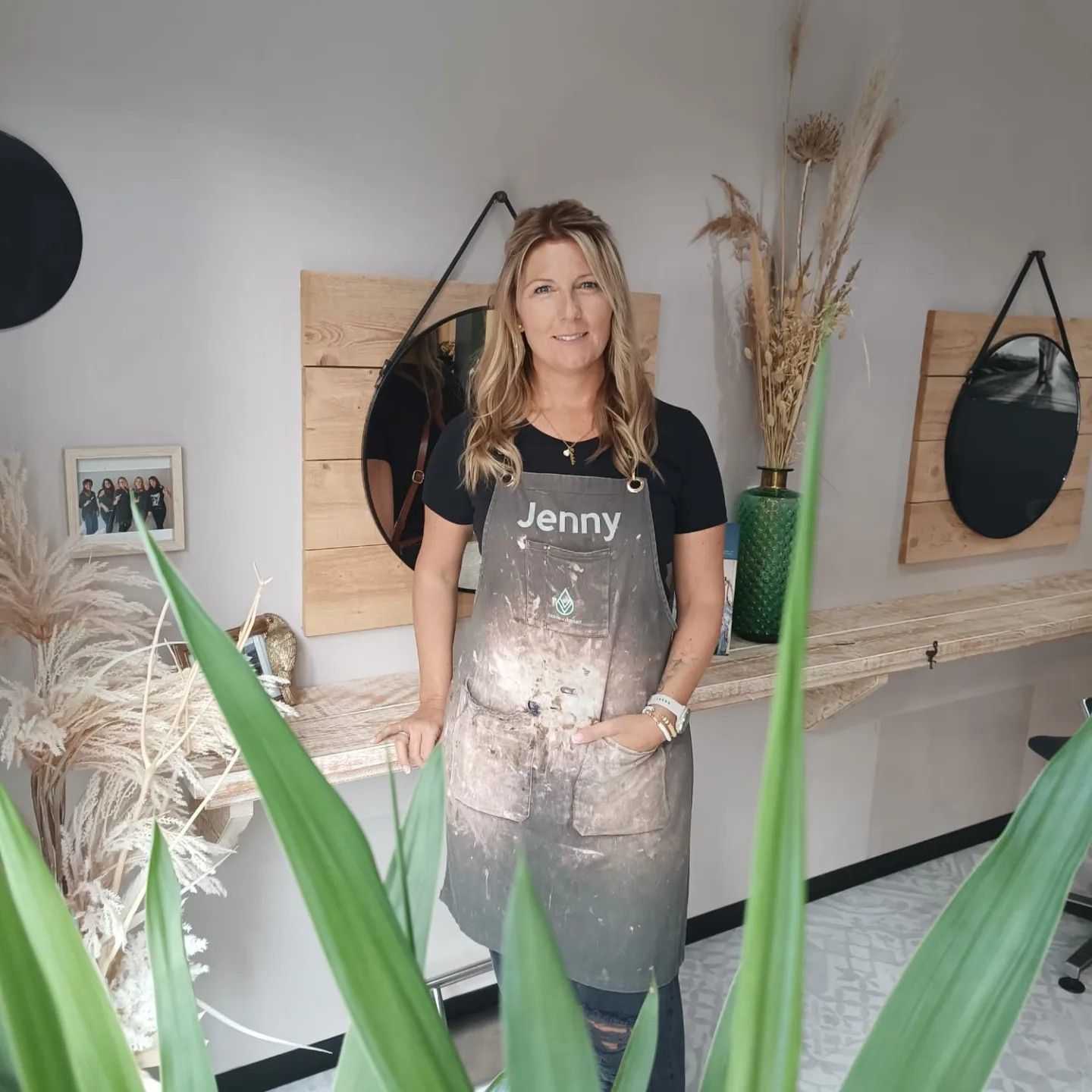 Jennifer Surmann ist Friseurin mit Leib und Seele. Nach ihrer Ausbildung eröffnete sie 2007 ihren Salon und legte 2009 ihre Meisterprüfung ab. Seit nun 18 Jahren erfüllt sie dort mit ihrem Team (Haar-)Träume zahlreicher Kunden. Jenny ist der administrative Kopf des Teams und behält, neben ihrer Leidenschaft am Stuhl, den organisatorischen Überblick im trubeligen Friseurbusiness.